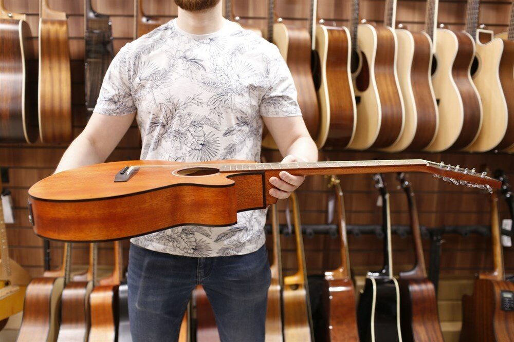 Type: electro-acoustic guitar, body type: folk, orientation: right-handed, number of frets: 20, number of strings: 6, scale length: 648 mm, presence of pickup: with pickup, with cutout, body material: mahogany