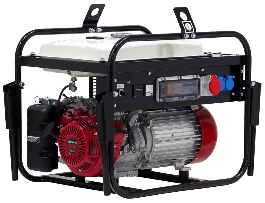 Type: gasoline, rated power: 6000 W, start: manual, number of phases: 3, engine power: 11.10 h.p., weight: 113 kg, cooling type: air, noise level: 71 dB, Number of sockets 220 V: 2 , autonomy: 10.40 h