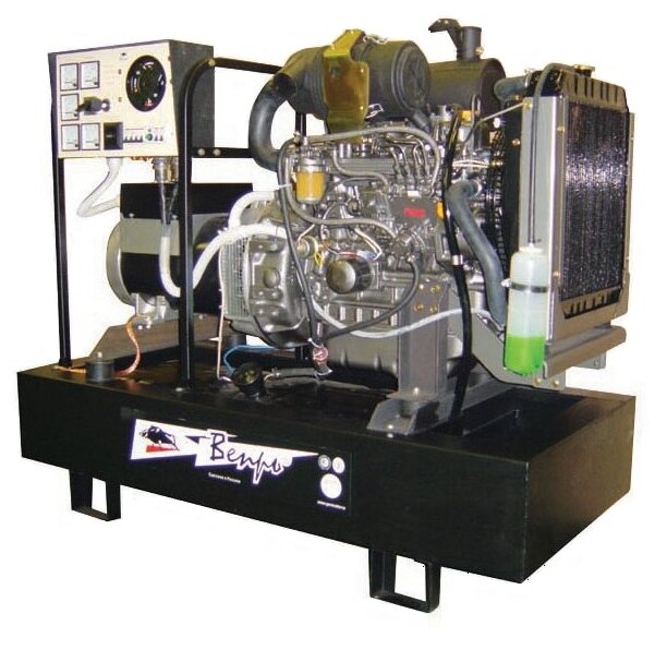 Type: diesel, rated power: 10400 W, maximum power: 11600 W, start: automatic, electric, number of phases: 3, engine power: 16.70 hp, weight: 365 kg, cooling type: liquid, noise level: 74 dB