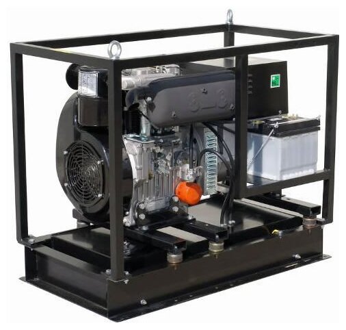 Type: diesel, rated power: 11500 W, maximum power: 12000 W, start: electric, number of phases: 1, engine power: 23 HP, weight: 195 kg, cooling type: air, Number of sockets 220 V: 2 , features: muffler