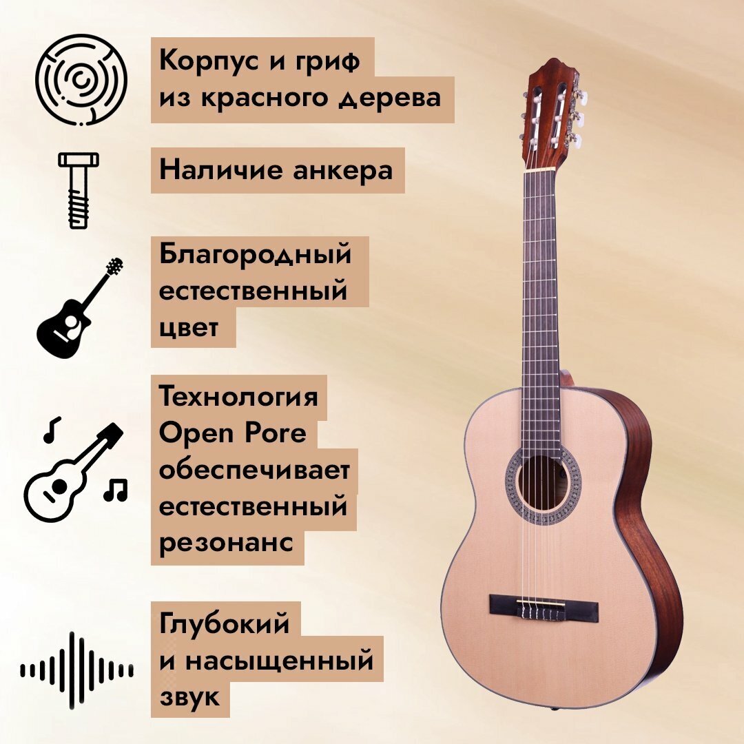 Type: Acoustic guitar, electric guitar, body type: drednought, orientation: right-handed, number of frets: 20, number of strings: 6-string metal, scale length: 650 mm, presence of pickup: without pickup, body material