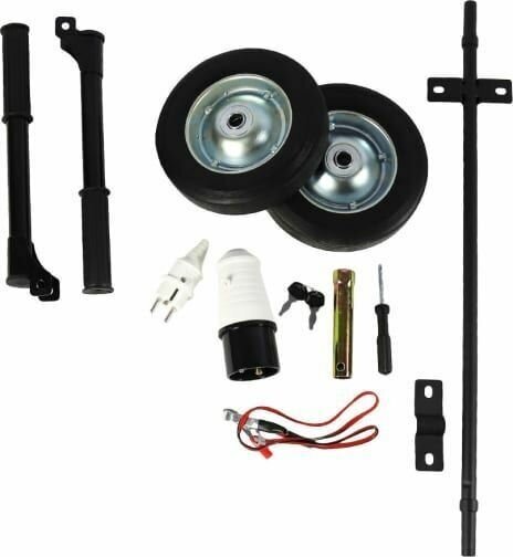 Wheels, Battery included, Voltmeter, Oil level gauge, Overload protection, Fuel level indicator, Folding handles, Electric starter