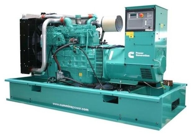 Type: diesel, rated power: 256000 W, maximum power: 281600 W, start: automatic, electric, number of phases: 3, weight: 3386 kg, cooling type: liquid, noise level: 95 dB