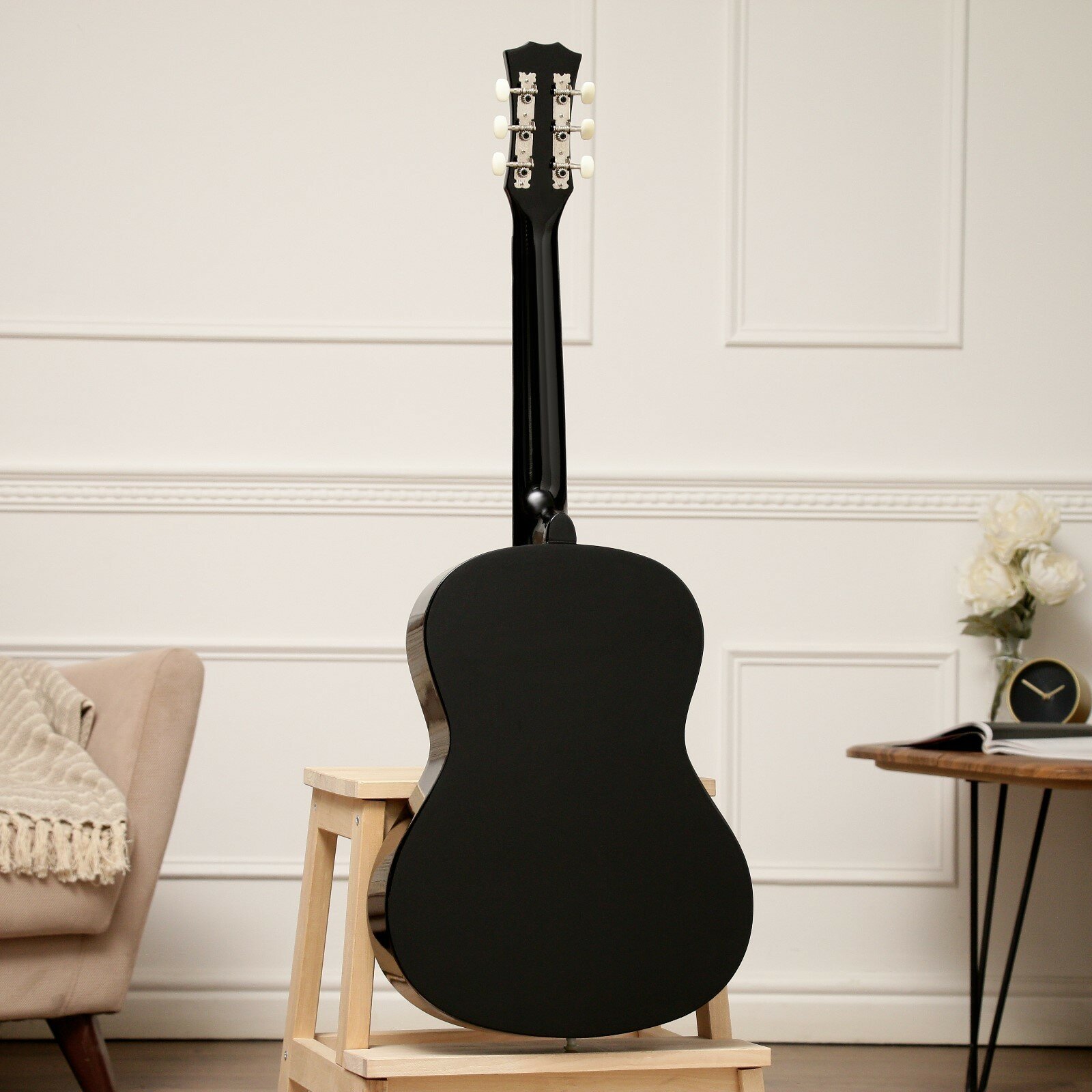 Type: Acoustic guitar, electric guitar, body type: drednought, orientation: right-handed, number of frets: 20, number of strings: 6-string metal, scale length: 650 mm, presence of pickup: without pickup, body material