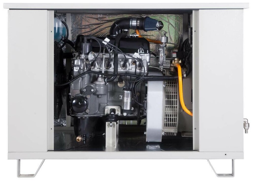 Type: gas, rated power: 10000 W, start: automatic, electric, number of phases: 3, weight: 400 kg, cooling type: liquid, noise level: 62 dB, functions: overload protection