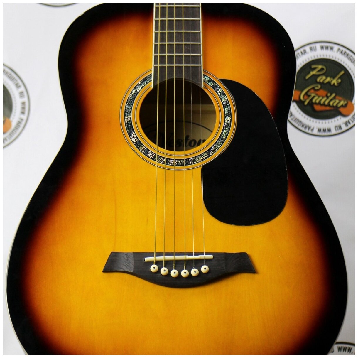 Type: western guitar, body type: hollow, orientation: right-handed, number of frets: 20, number of strings: 6, scale length: 630 mm, presence of pickup: without pickup, body material: agathis, neck material: maple, color: