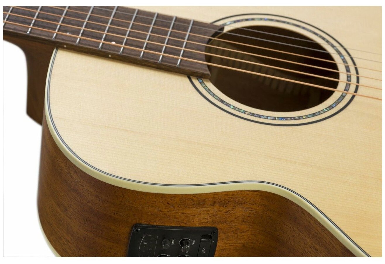 Type: electro-acoustic guitar, number of frets: 20, number of strings: 6, body material: spruce, mahogany