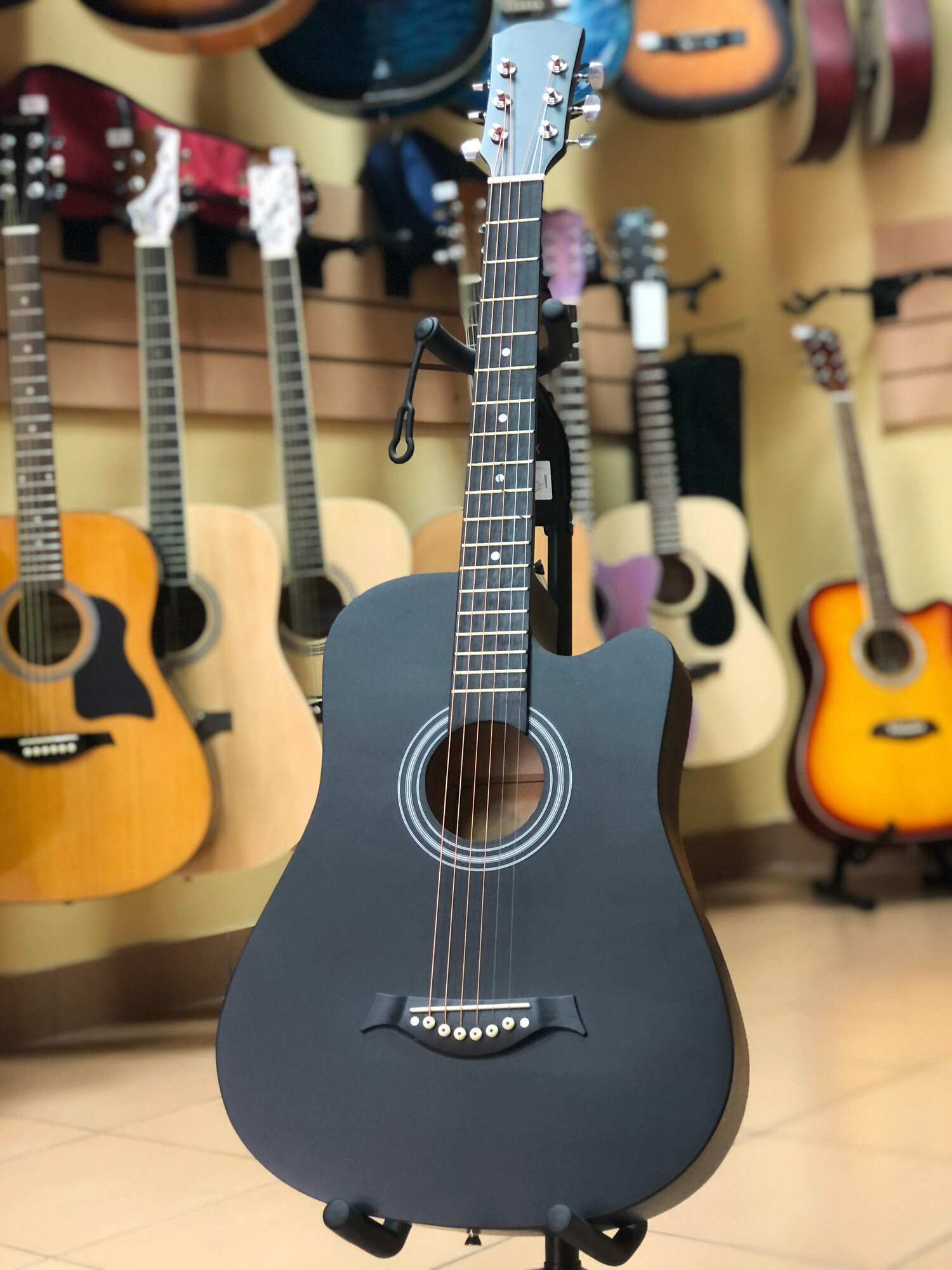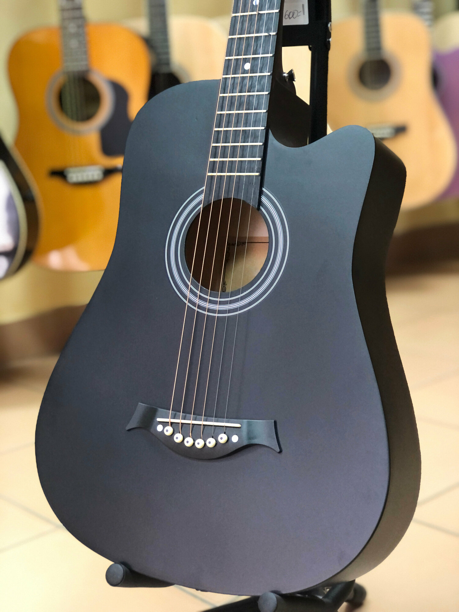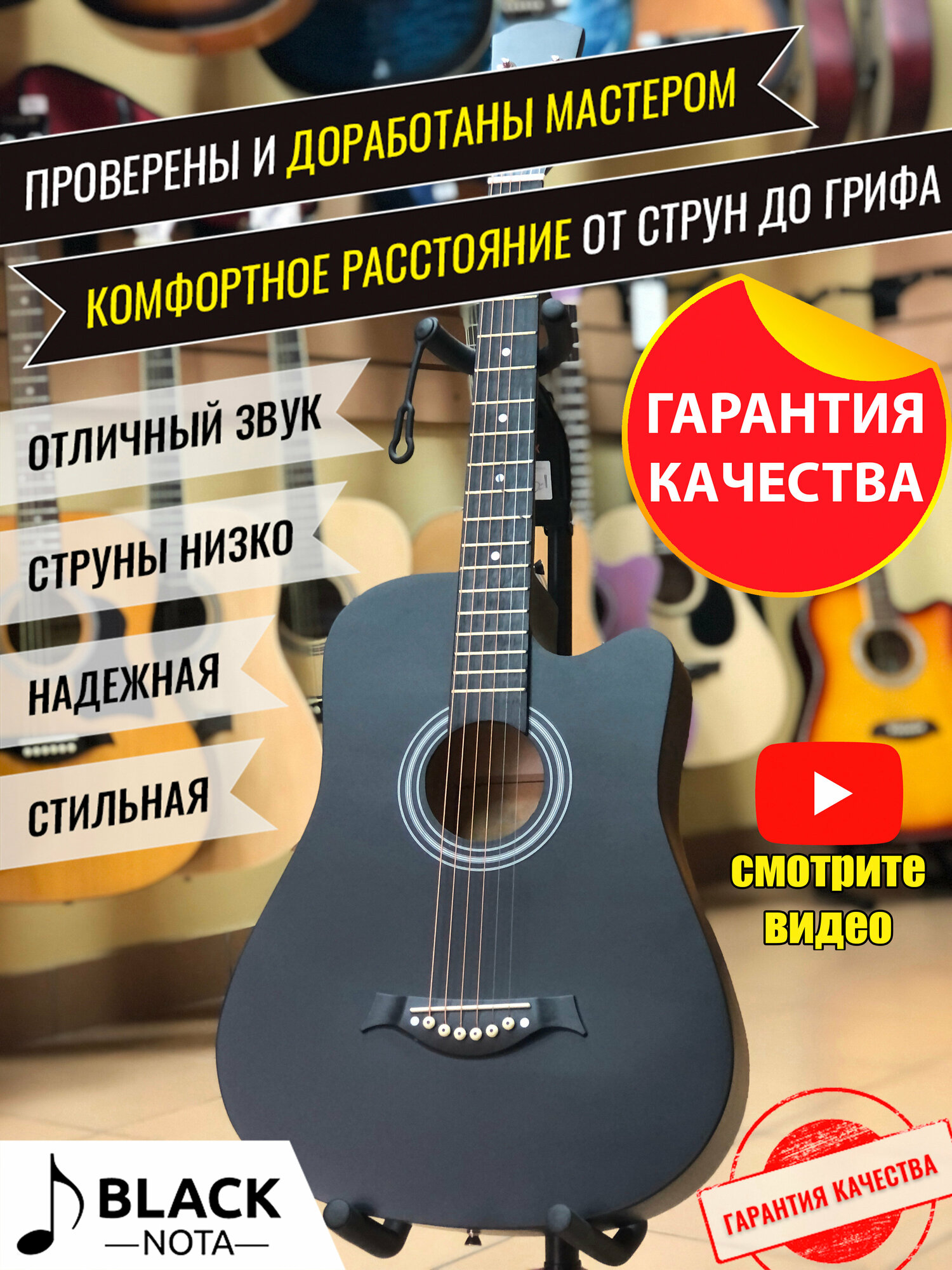 Type: western guitar, body type: folk, orientation: right-handed, number of frets: 18, number of strings: 6, scale length: 648 mm, presence of pickup: without pickup, with cutout, body material: linden, neck material: maple,