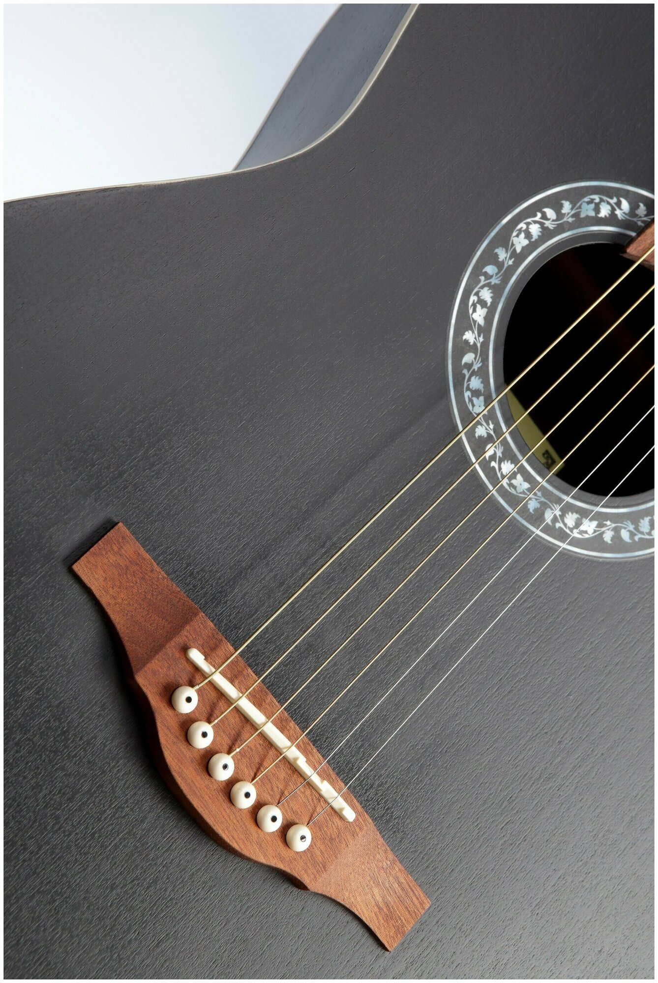 Open pore finish; softwood top, mahogany back and sides; neck fastening: "Dovetail"; white plastic edging