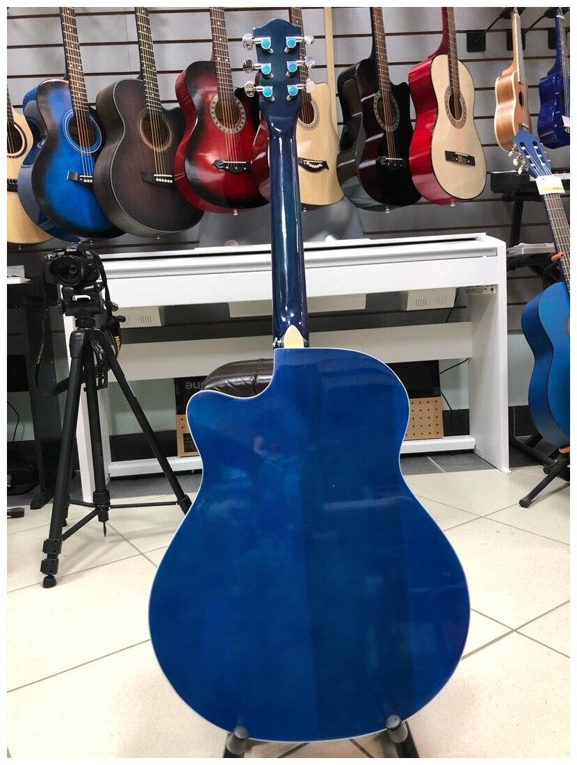 Type: western guitar, body type: folk, orientation: right-handed, number of frets: 20, number of strings: 6, scale length: 650 mm, presence of pickup: without pickup, with cutout, body material: linden, neck material: maple,