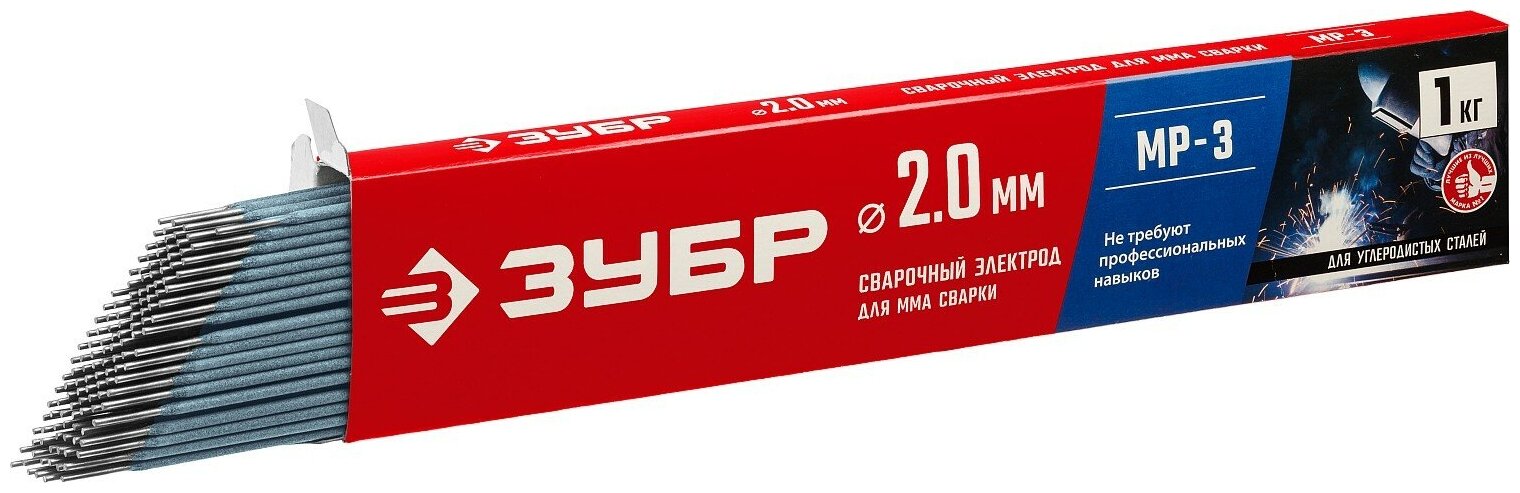 ZUBR MP-3 with rutile coating, d 2.0 x 300 mm, 1 kg in a box. 40011-2.0