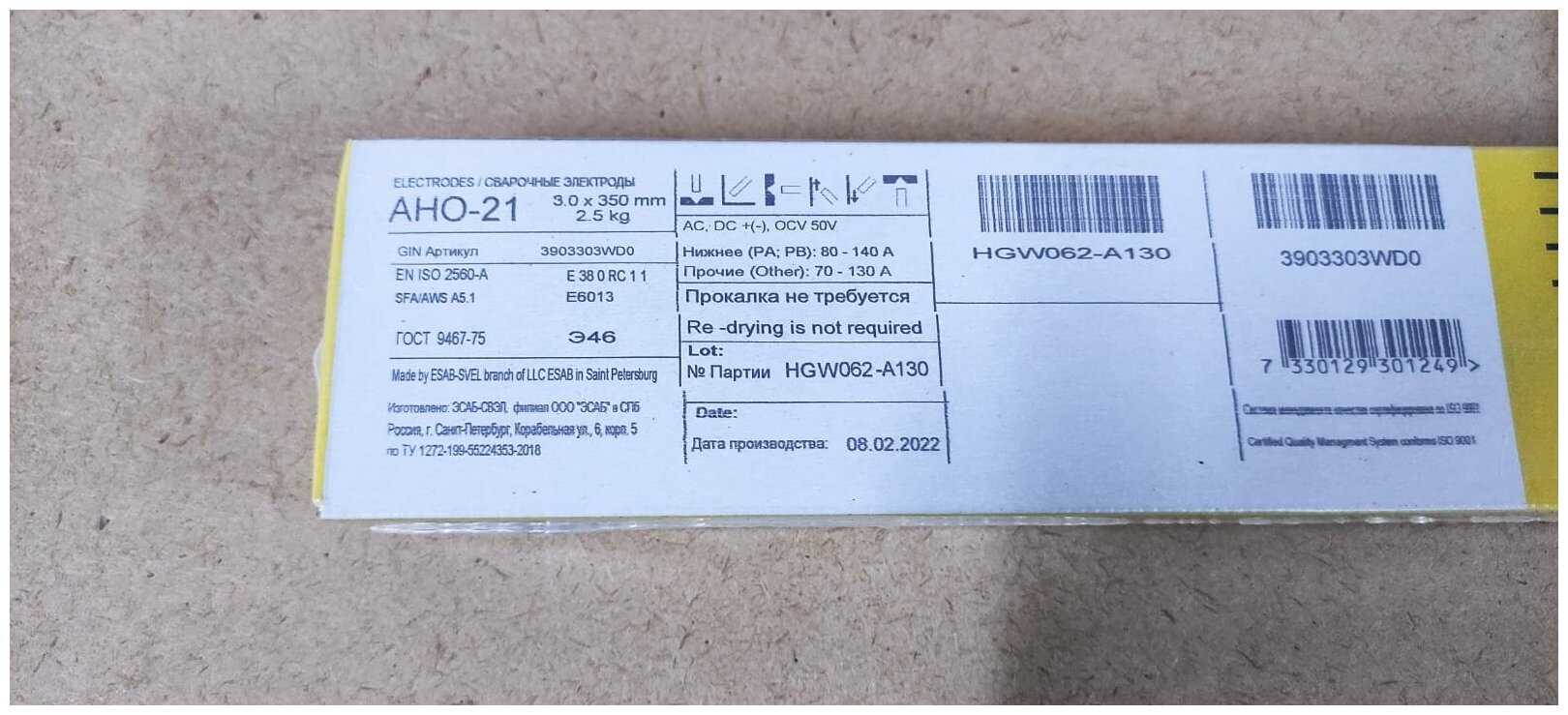 Electrode type: for manual arc welding, electrode material: metal alloy, purpose: carbon steel, electrode length: 35 cm, welding mode: AC/DC, coating type: rutile, electrode set
