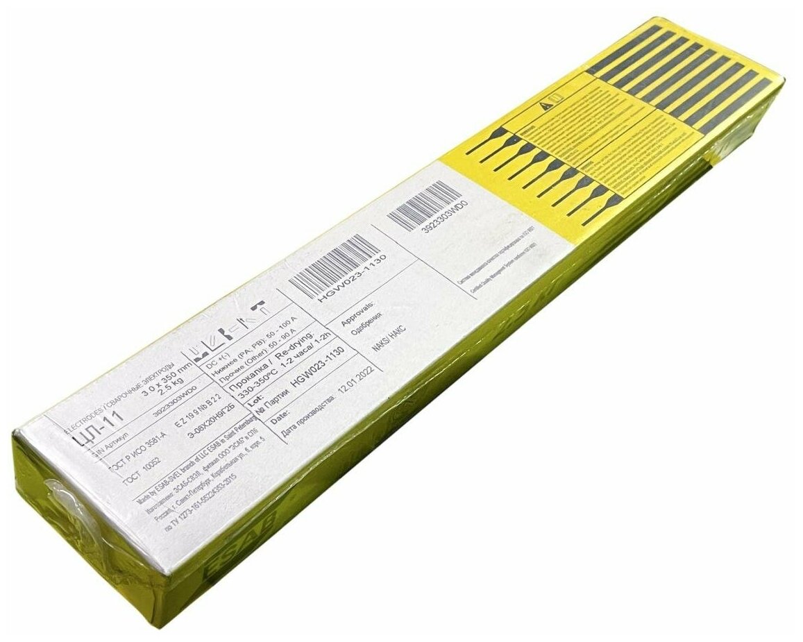 Electrode type: for manual arc welding, electrode material: metal alloy, purpose: stainless steel, electrode length: 35 cm, welding mode: DC, tensile strength: 540 MPa, relative elongation: 2