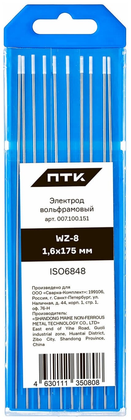Electrode type: for TIG welding, electrode material: tungsten, electrode length: 17.50 cm, welding mode: AC