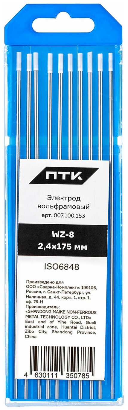 Electrode type: for TIG welding, electrode material: tungsten, electrode length: 17.50 cm, welding mode: AC