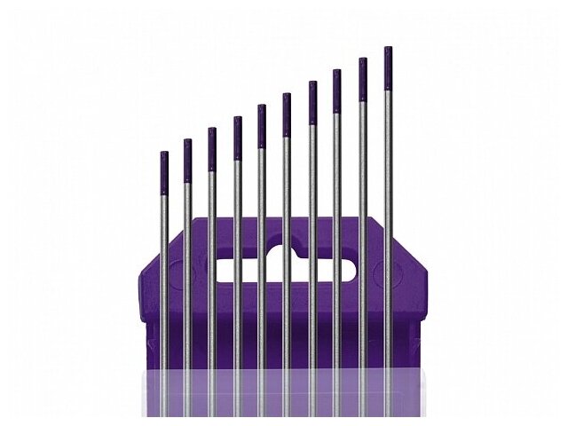 Electrode type: for argon arc welding, electrode material: tungsten, purpose: universal, electrode length: 17.50 cm, welding mode: AC/DC, metal oxide: lanthanum, color: purple, set of electrodes