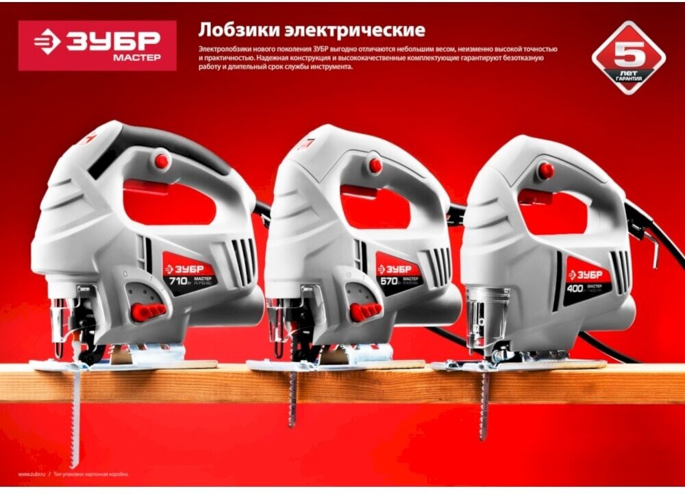 Type of power supply: from the mains, power: 550 W, functions: pendulum stroke, stroke frequency adjustment, design features: quick-clamping fastening of the file, the ability to connect a vacuum cleaner, protective shield, cutting depth in wood