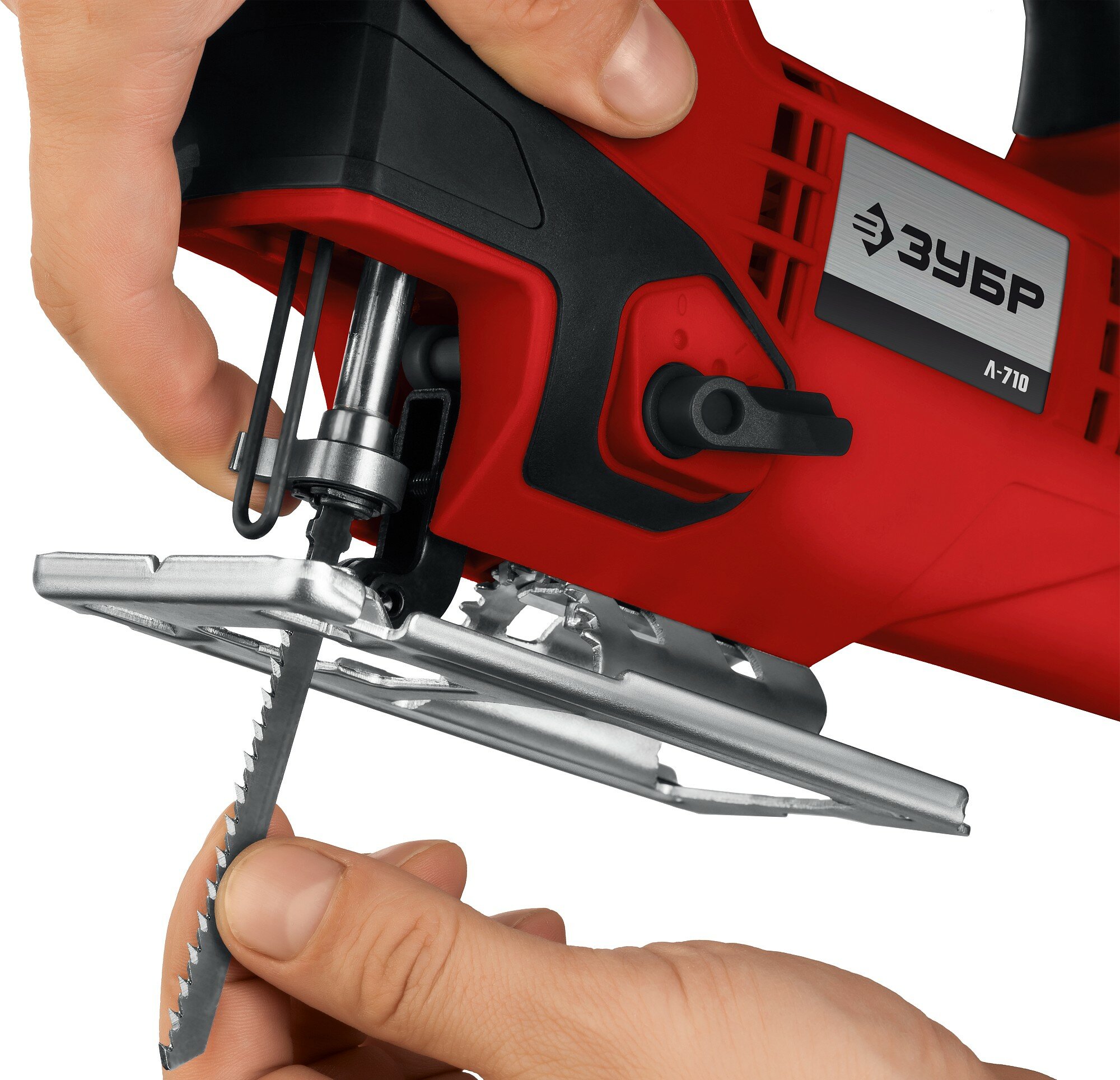 Type of power supply: from the mains, power: 550 W, functions: pendulum stroke, stroke frequency adjustment, design features: quick-clamping fastening of the file, the ability to connect a vacuum cleaner, protective shield, cutting depth in wood