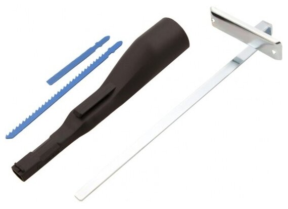 Max. sole angle: 45°; network cable length: 3 m; manual electric jigsaw - 1 pc; wood file - 1 pc; file for metal - 1 pc; hex key - 1 pc; guide - 1 piece; adapter for connecting a vacuum cleaner - 1 pc