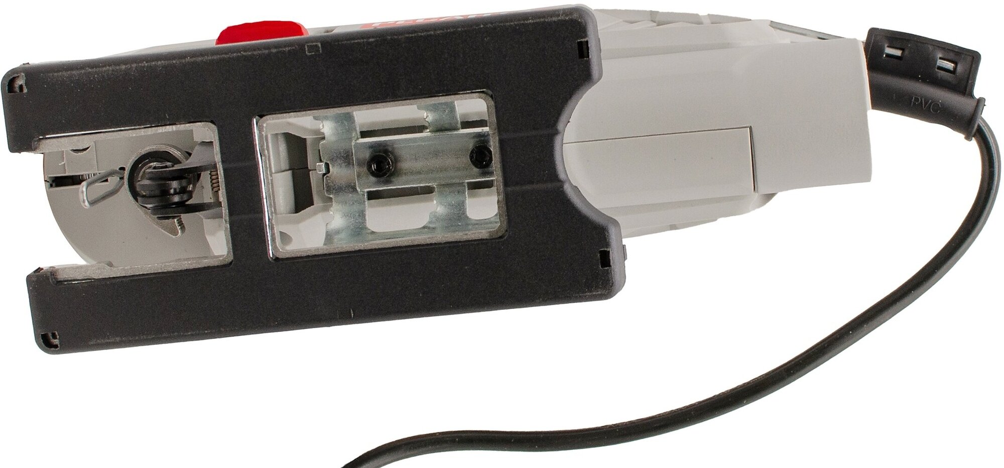 Design features: Quick-clamp attachment of the file, the ability to connect a vacuum cleaner, a laser marker, a rubberized handle, a backlight, blowing off sawdust, Vacuum cleaner connection, Rubber-coated handles