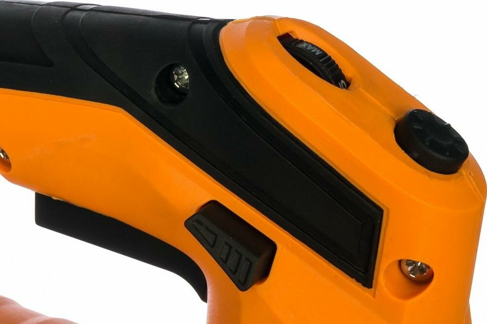 Design features: Quick-clamp attachment of the file, the ability to connect a vacuum cleaner, a laser marker, a rubberized handle