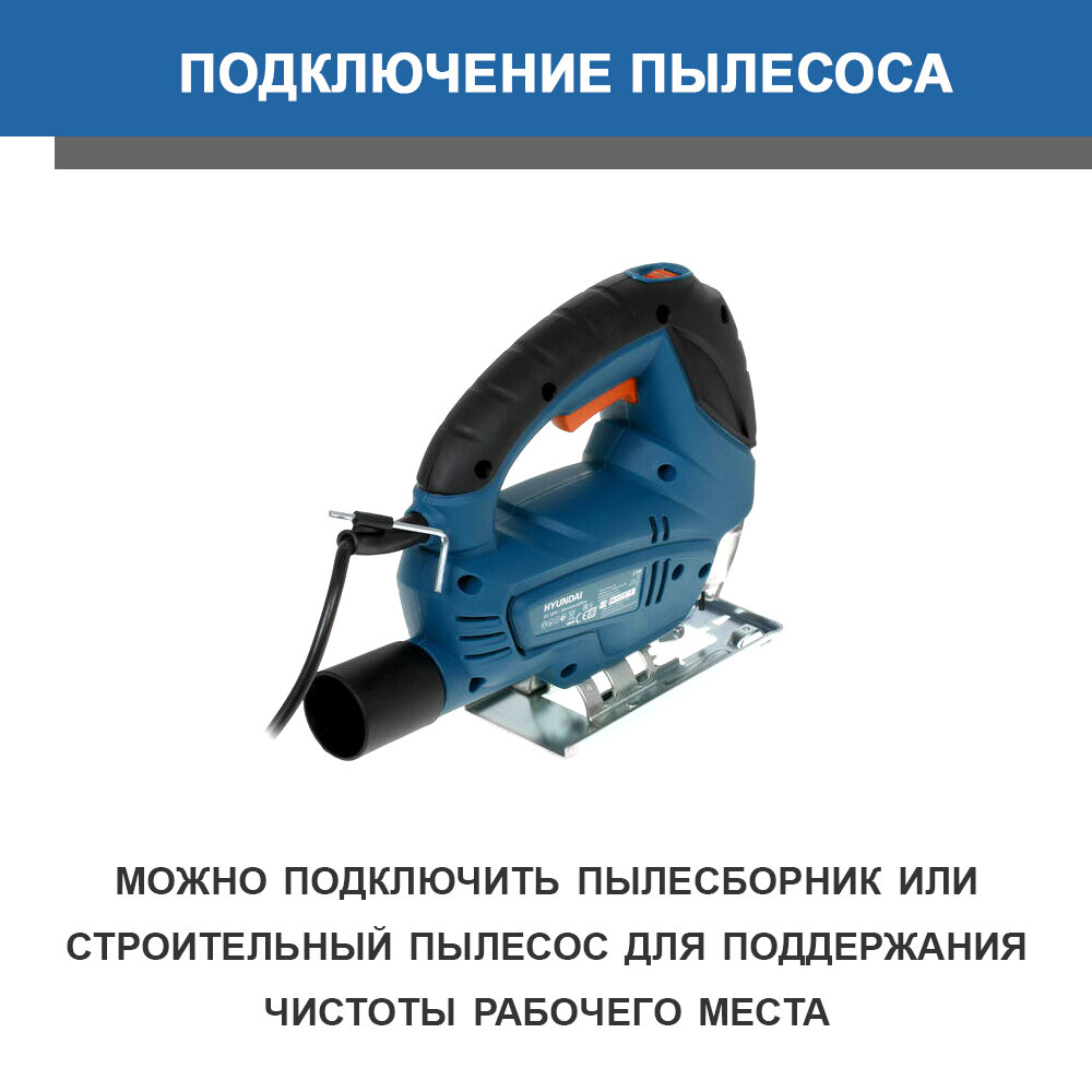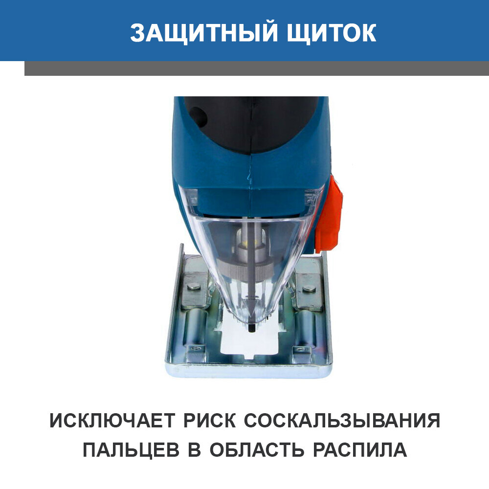 Design features: Type of power supply: from the mains, power: 550 W, functions: pendulum stroke, stroke frequency adjustment, design features: quick-clamping fastening of the file, the ability to connect a vacuum cleaner, protective shield, cutting depth in wood