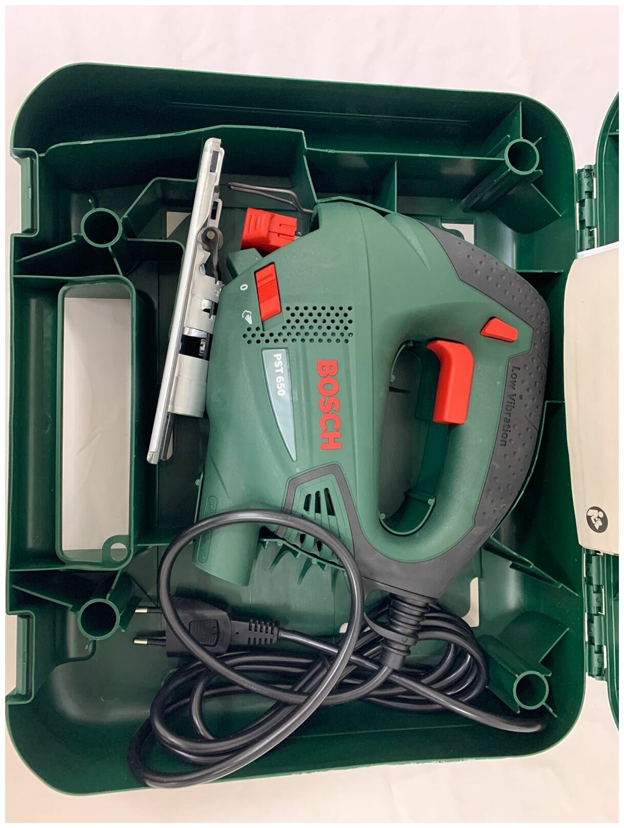 Type of power supply: from the mains, power: 550 W, functions: pendulum stroke, stroke frequency adjustment, design features: quick-clamping fastening of the file, the ability to connect a vacuum cleaner, protective shield, cutting depth in wood