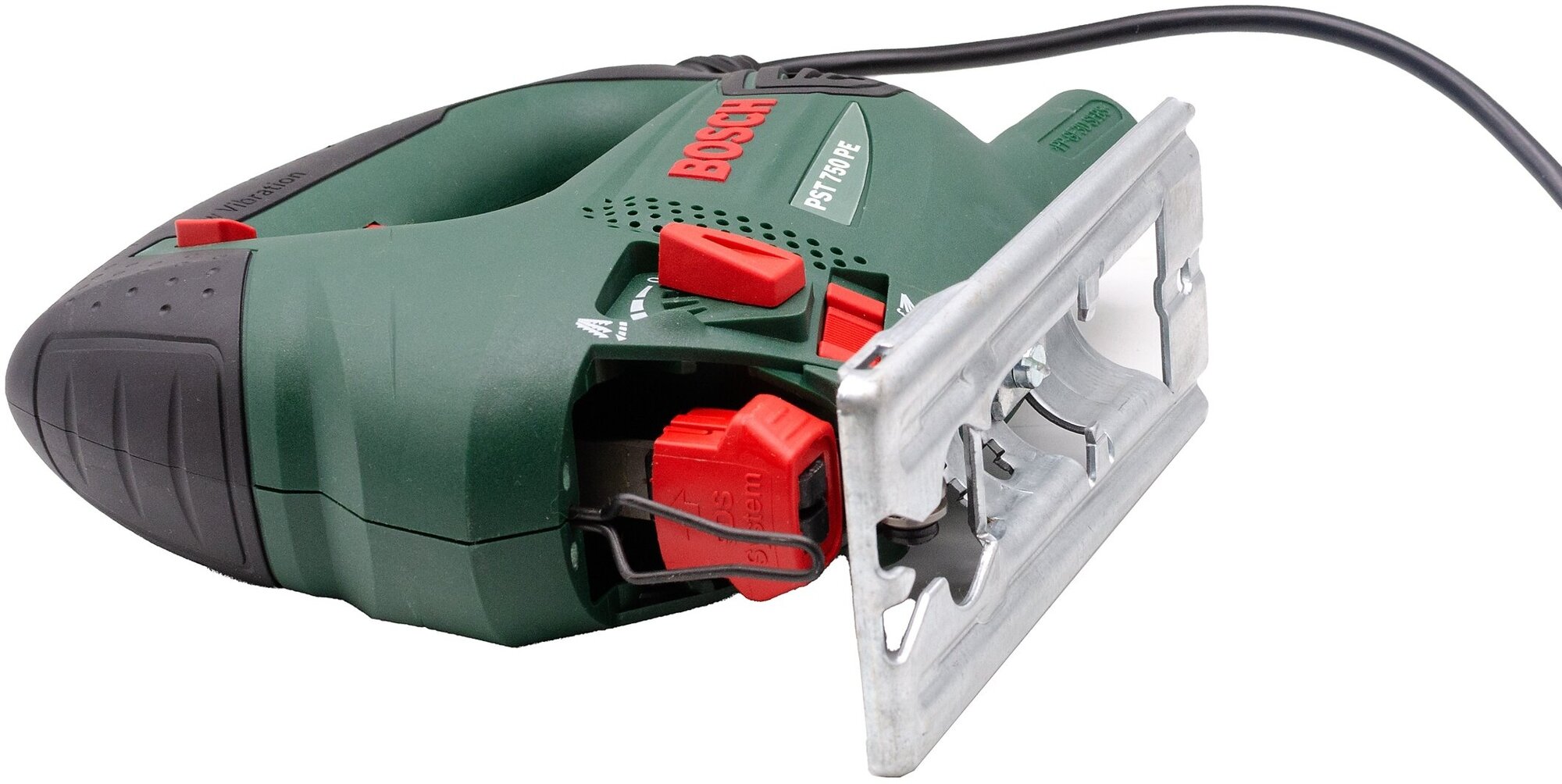 Type of power supply: from the mains, power: 550 W, functions: pendulum stroke, stroke frequency adjustment, design features: quick-clamping fastening of the file, the ability to connect a vacuum cleaner, protective shield, cutting depth in wood