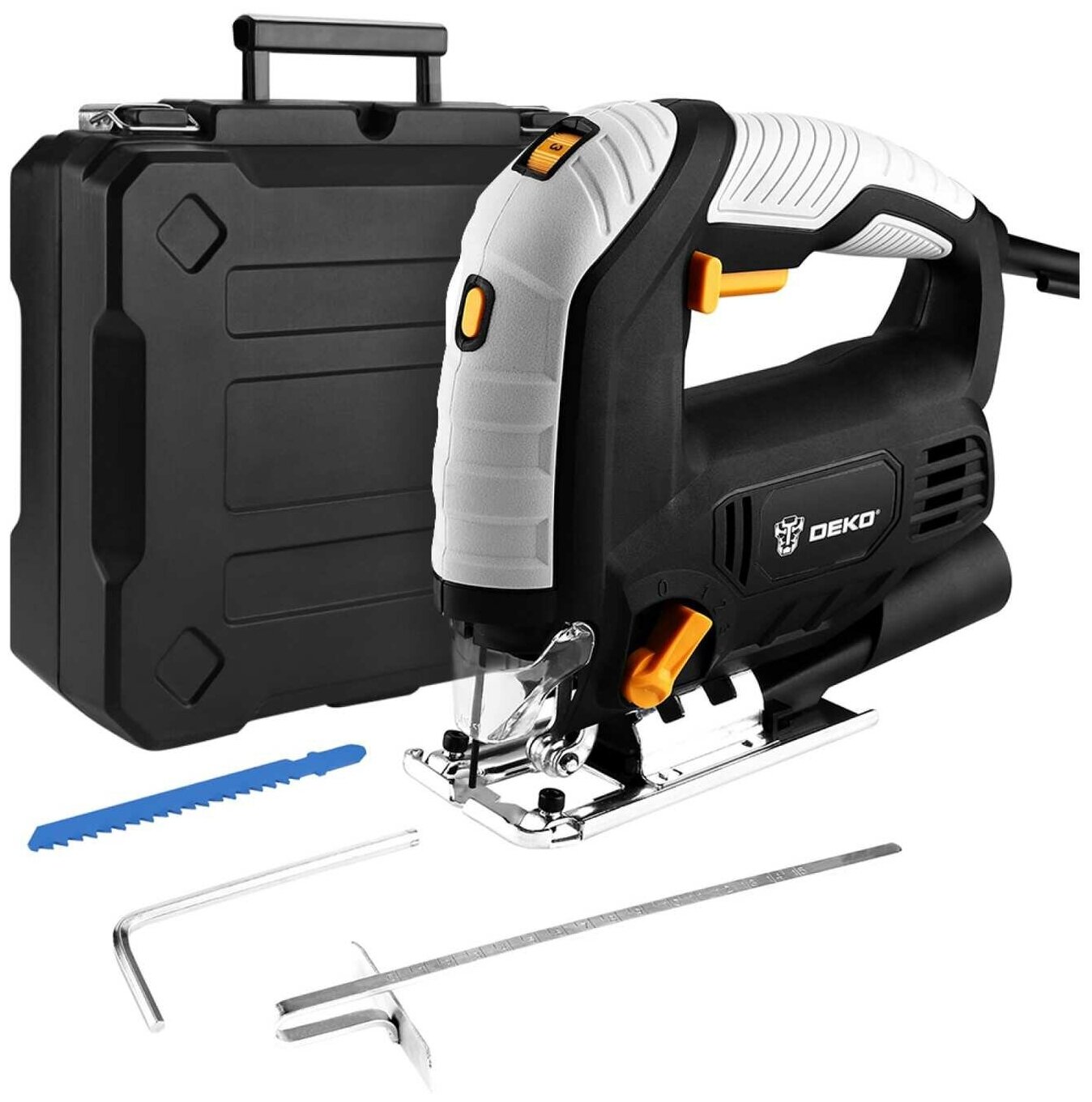 Type of power supply: from the mains, power: 1000 W, functions: pendulum stroke, stroke frequency adjustment, design features: the ability to connect a vacuum cleaner, laser marker, rubberized handle, quick-clamping, prop depth