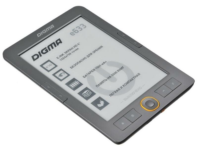 Display type: E-Ink, diagonal: 6, design features: paging buttons, book and document formats: CHM, DJVU, DOC, EPub, FB2, HTML, PDF, RTF, TXT, XLS, display resolution: 1024x758