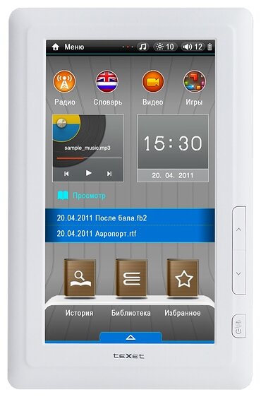 Display type: LCD color, diagonal: 7", design features: built-in backlight, paging buttons, touch screen, book and document formats: CHM, EPub, FB2, HTML, PDF, PalmDOC, RTF, TXT, display resolution: 800x480