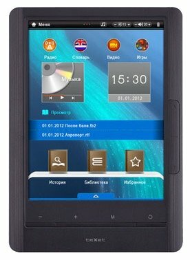 Display type: LCD color, diagonal: 7", design features: built-in backlight, paging buttons, touch screen, book and document formats: CHM, DJVU, EPub, FB2, HTML, PDF, PalmDOC, RTF, TXT, display resolution: 800x600