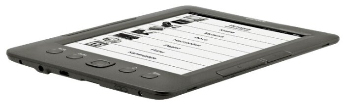 Display type: E-Ink, diagonal: 6, E-Ink display generation: Pearl, book and document formats: CHM, DJVU, DOC, EPub, FB2, HTML, PDF, RTF, TXT, display resolution: 800x600