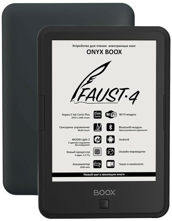 Display Type: E-Ink, Diagonal: 6", E-Ink Display Generation: Carta Plus, Wireless: Bluetooth, Wi-Fi, Book/Document Formats: CHM, DJVU, DOC, EPub, FB2, HTML, PDF, RTF , TXT, display resolution: 1444x1072, android