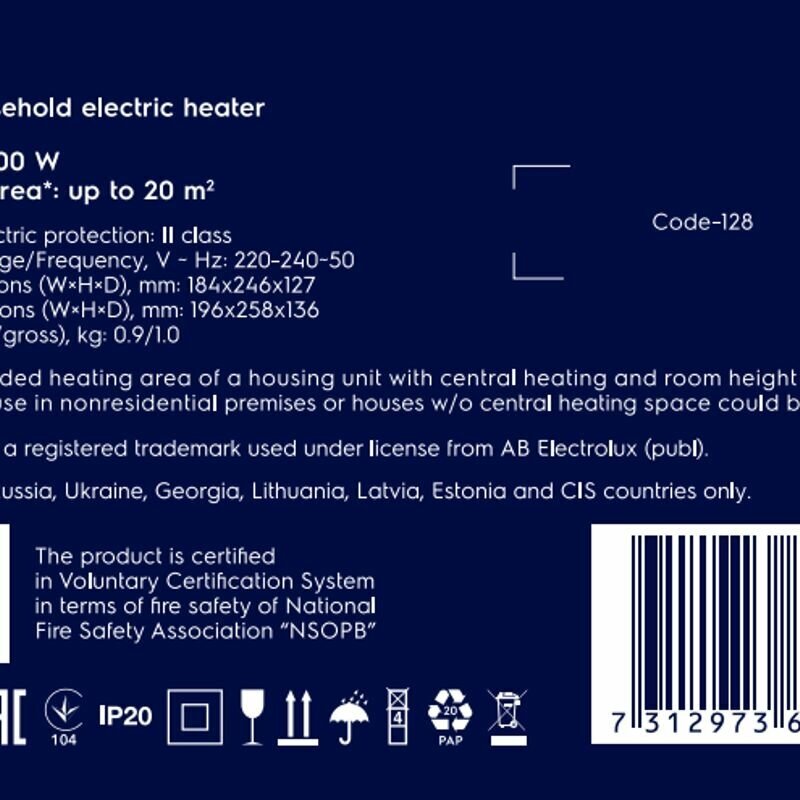 Type of heater: fan heater, room area: 23 m², power consumption: 1.50 kW, installation: floor, table, floor, table, protection systems: tip-over shutdown, overheating shutdown,