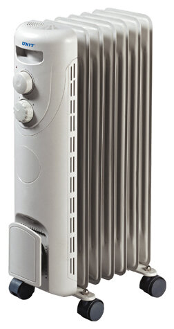 Type of heater: oil cooler, installation: floor, protection systems: shutdown in case of overheating, control: mechanical, features: temperature control, thermostat