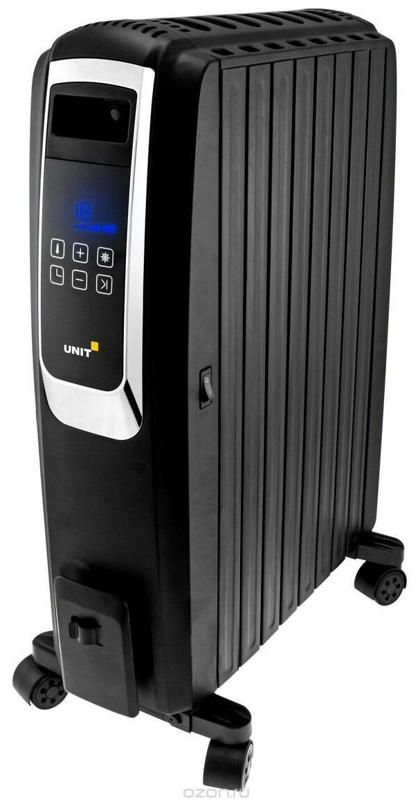 Type of heater: oil cooler, room area: 20 m², installation: floor, protection systems: shutdown in case of overheating, control: electronic, features: display, delayed start, remote control, temperature control