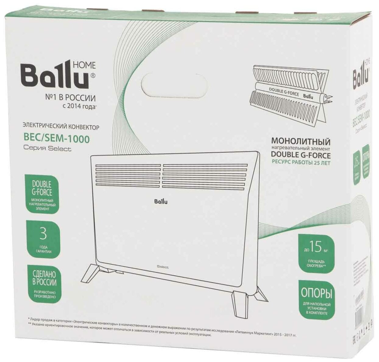 Heater type: convector, room area: 15 m², power consumption: 1 kW, installation: floor, wall-mounted, protection systems: waterproof housing, tip-over shutdown, overheating shutdown, controlled