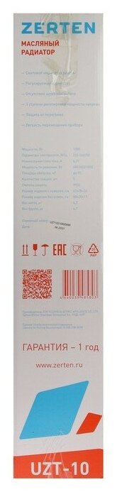 Heater type: oil cooler, room area: 10 m², installation: floor, protection systems: overheating shutdown, control: mechanical, features: temperature control, thermostat, castors, height:
