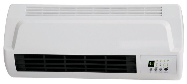 Heater type: fan heater, room area: 25 m², installation: wall-mounted, protection systems: overheating shutdown, control: electronic, features: display, temperature control, timer, heater type