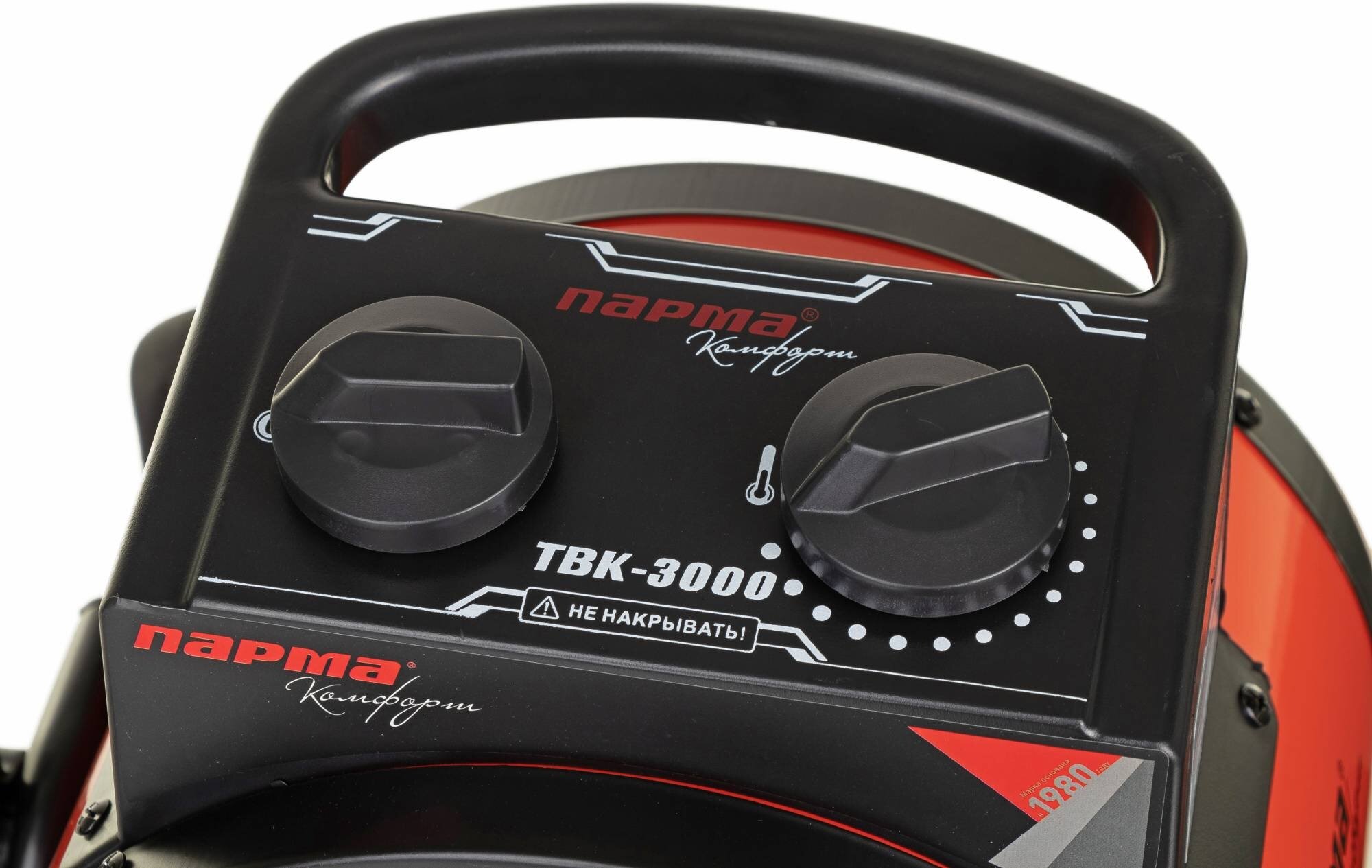Fan heater Parma TVK-3000 02.011.00056 is equipped with a ceramic heating element with a power of 3 kW, as well as overheating protection for safe use.