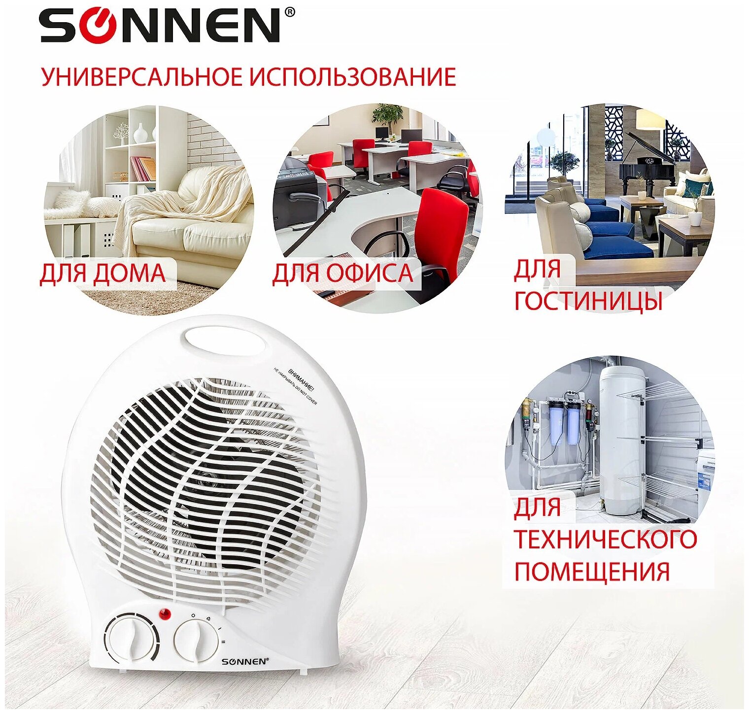 Type of heater: fan heater, room area: 20 m², power consumption: 2 kW, installation: floor, protection systems: shutdown in case of overheating, control: mechanical, features: temperature control, t
