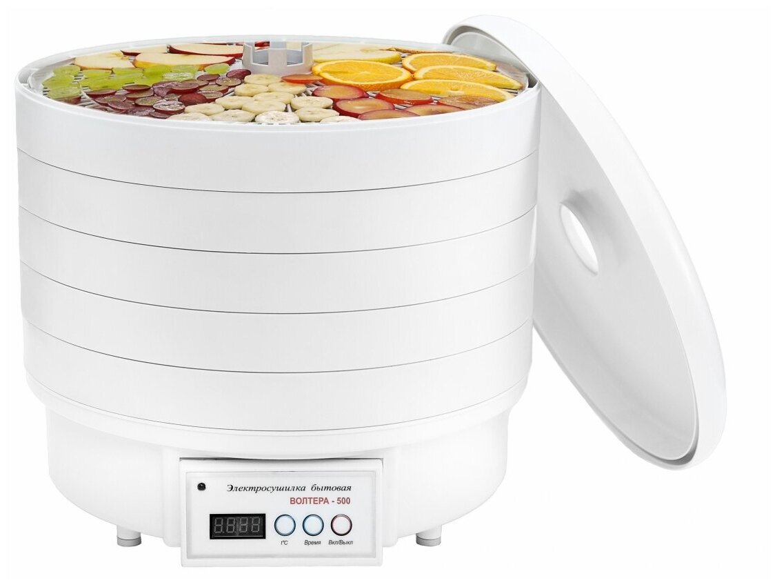 Type: convective, tray material: opaque plastic, number of trays: 5, power: 500 W, drying temperature control, timer, control: electronic, maximum load: 5 kg, features: display, protection against moisture