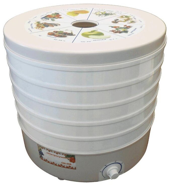 Type: convective, tray material: opaque plastic, number of trays: 5, power: 520 W, drying temperature control, control: mechanical, maximum load: 5 kg
