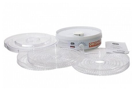 Type: convective, tray material: transparent plastic, number of trays: 5, power: 250 W, drying temperature control, control: mechanical, features: overheating protection