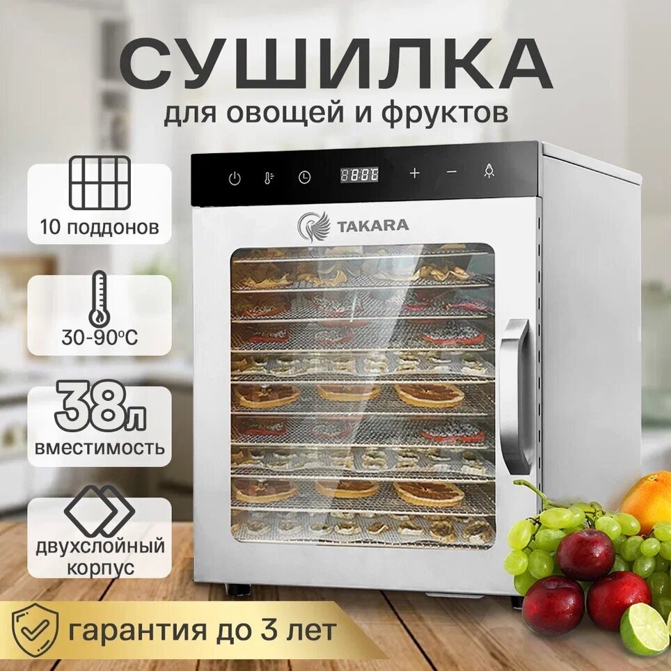 Type: convective, tray material: opaque plastic, number of trays: 5, power: 500 W, drying temperature control, timer, control: electronic, maximum load: 5 kg, features: display, protection against moisture