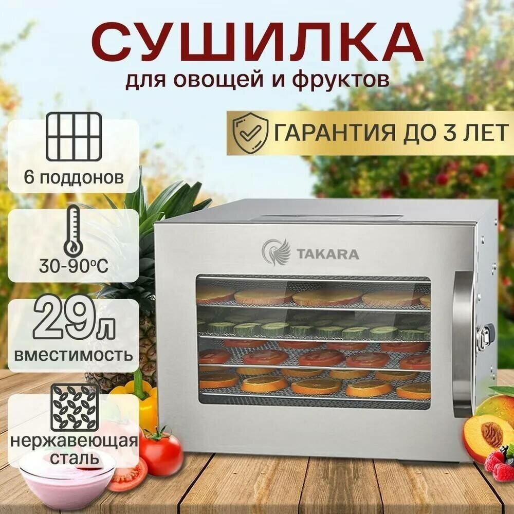 Type: convective, tray material: metal, number of trays: 6, power: 500 W, drying temperature control, timer, control: electronic, features: display, overheating protection, on indication, adjustment