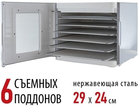 Type: convective, tray material: metal, number of trays: 6, power: 450 W, drying temperature adjustment, timer, control: electronic, features: display, additional functions: marshmallow preparation