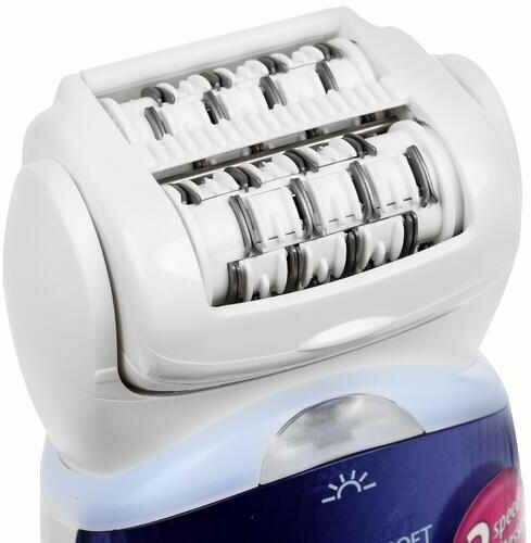 Type: epilator, powered by battery, additional functions: light, attachments: for shaving, for spot hair removal, trimmer attachment, number of tweezers: 30, material of tweezers: metal, number of speeds: 2, special