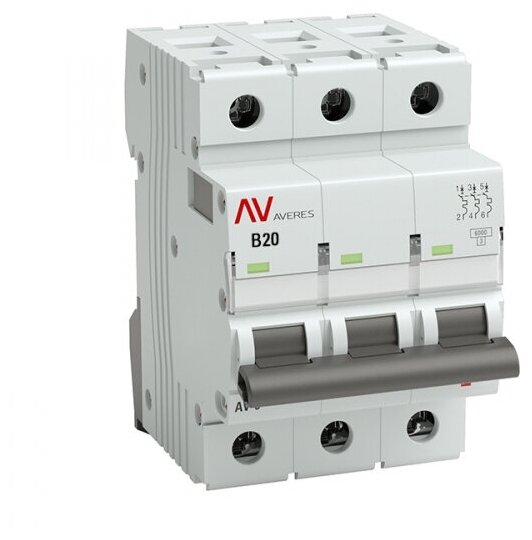 Automatic switch AV-6 3P 20A B 6kA EKF AVERES art. mcb6-3-20B-av